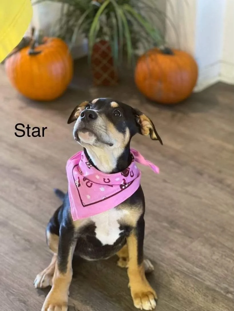 Introducing Star, the adorable Staffordshire mix with a heart full of love and a spirit that shines bright! Born as one of only two girls in a lively litter of seven, Star faced her share of challenges early on. Thankfully, a compassionate animal advocate stepped in, nurturing her until she was strong enough to thrive on her own.